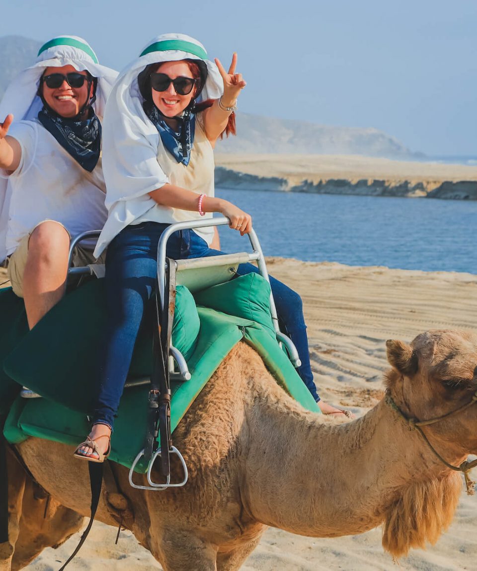 Come and enjoy a spectacular camel ride along the crystalline waters and majestic waves of the Pacific Ocean.