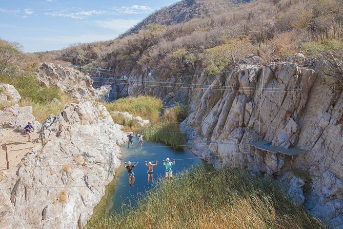 Overview Soar over the dramatic curves of desert canyons and drive a powerful ATV on off-road trails on this Costa Azul from Los Cabos. Glide along suspended steel cables while absorbing the unspoiled scenic beauty of the landscape, then drive through with ecological habitats on a modern ATV vehicle. Satisfy an appetite for adrenaline on this adventurous and active tour.